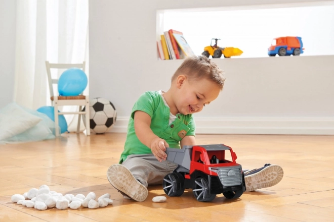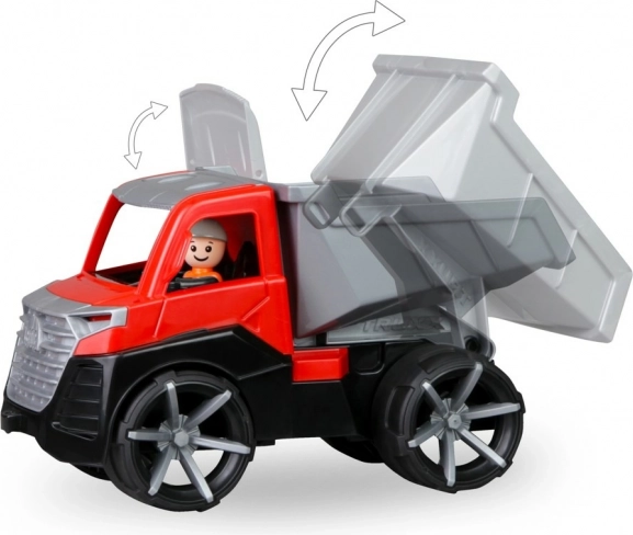 De kiepwagen LENA TRUXX 2 is een modern speelgoedvoertuig voor kleine techniekliefhebbers. Hij biedt realistische functies die creatief spel ondersteunen – het scharnierende dak geeft toegang tot de cabine met de bestuurderfiguur en de kiepbak met vergrendeling vervoert en stort de lading veilig precies daar waar nodig.