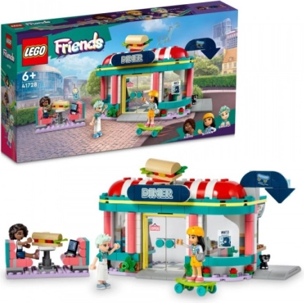 Bouw je eigen restaurant met de kleurrijke set LEGO Friends Bar in het centrum van Heartlake, met een drive‑through loket, buiten zitplaats, arcadekast en een verplaatsbare jukebox. Kinderen kunnen sandwiches uit de koelkast bereiden, klanten bedienen en op de skateboard rijden – en misschien komt er ook een sluwe kat op bezoek!