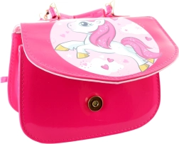 Deze roze handtas met een schattige eenhoorn is een perfecte accessoire voor dagelijks gebruik en speciale gelegenheden. Het glanzende oppervlak, gouden metalen details en speelse print maken er een stijlvol item van waar kinderen dol op zijn.
