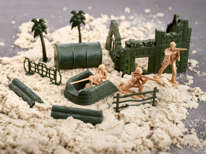 Maak een gedetailleerd gevechtsscenario met plastic soldaatjes in twee kleuren en veel accessoires. Kinderen kunnen strategieën plannen, verdedigingslinies bouwen en hun logisch denken en ruimtelijk inzicht ontwikkelen. De set is ideaal voor zelfstandig spel of samen met broers, zussen of vrienden.