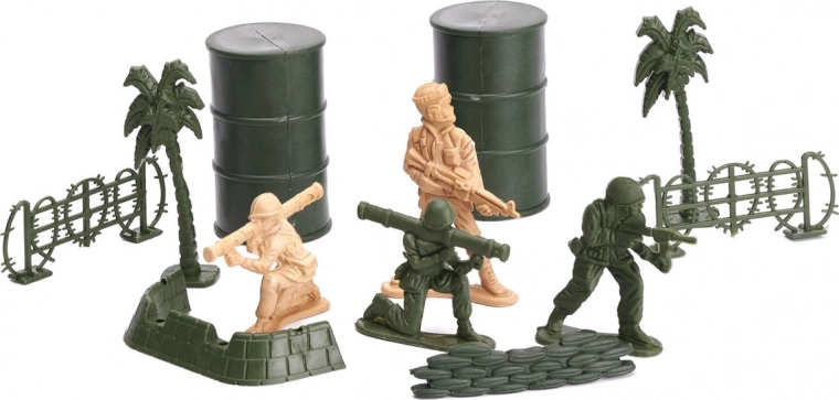 De set bevat ongeveer 60 soldatenfiguren in verschillende poses en rijke componenten voor de bouw van een militaire basis – vaten, hekken, obstakels, palmen en meer. De figuren zijn circa 5 cm hoog, staan stabiel op een vlakke ondergrond en zijn gemakkelijk te plaatsen.