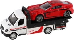 Deze realistisch uitgewerkte takelwagen met een geladen sportautootje breidt het wagenpark van kinderen uit met een geliefde werkauto. Dankzij de terugtrekfunctie hoef je alleen te duwen, los te laten en de actie te volgen – perfect voor scènes in de stad, op de weg en in de werkplaats.