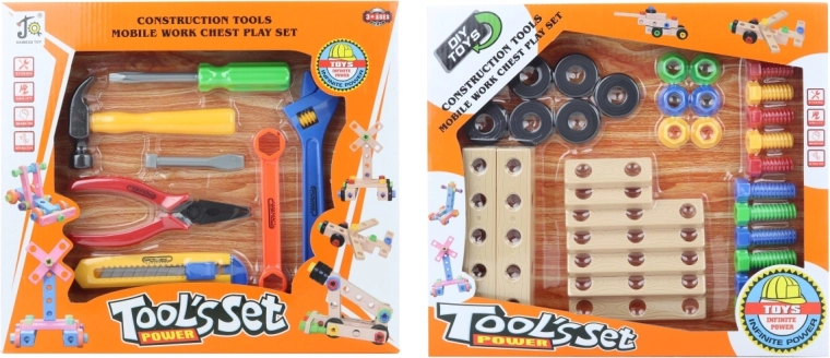 Kunststof gereedschapsset is ideaal voor kleine doe-het-zelvers. Bevat een hamer, tang, schroevendraaier, sleutel, mes en andere accessoires die kinderen helpen hun motorische vaardigheden te ontwikkelen tijdens het spelen.