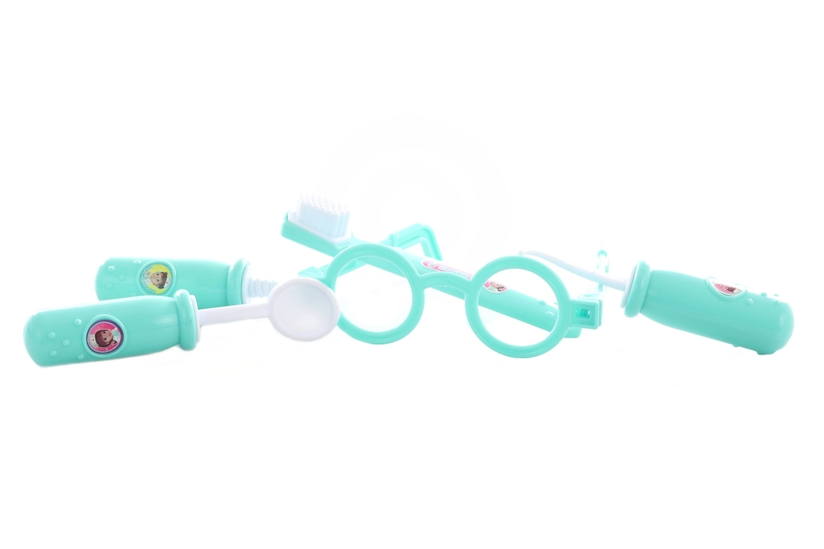 Deze tandarts- en doktersset voor kinderen biedt alles wat kleine tandartsen nodig hebben voor realistisch spel – van een stethoscoop met geluid tot een tandenborstel, bril, microscoop en tandartsboor. Dankzij de rijke uitrusting trainen kinderen fantasie, communicatie en fijne motoriek.