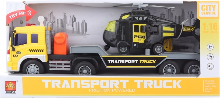 Deze gedetailleerde vrachtwagen met helikopter zorgt voor uren speelplezier. Dankzij de licht- en geluidseffecten beleven jonge liefhebbers een realistische ervaring van verkeer en reddingsacties. Het speelgoed is direct klaar voor gebruik – batterijen zijn inbegrepen.