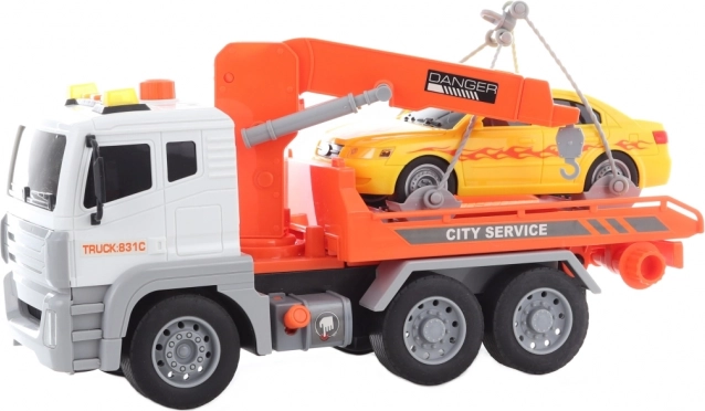 Deze robuuste takelwagen biedt kinderen een authentieke ervaring van stadsdiensten. Bij het indrukken van de geïntegreerde knoppen gaan de lichten aan en klinken realistische geluiden, wat de verbeelding prikkelt en de zintuiglijke ontwikkeling ondersteunt.