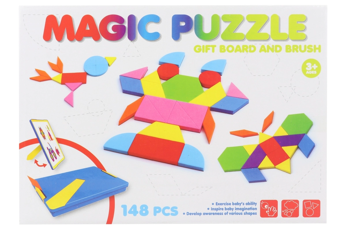 Deze uitgebreide set magnetische tangrams biedt urenlang creatief spel en leren. Dankzij de magnetische laag blijven de stukjes goed zitten op magnetische borden of de koelkast, terwijl het foam licht, prettig aanvoelend en veilig is voor kleine handjes. Het compacte plastic doosje houdt alle stukjes bij elkaar en maakt meenemen eenvoudig.
