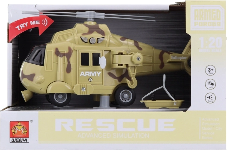 Bij het indrukken van de knop maakt de helikopter geluiden en licht hij op, wat aanzienlijk bijdraagt aan een realistische speelervaring. Dit wordt tevens ondersteund door de meegeleverde AG13/LR44-batterijen die in de verpakking zitten.