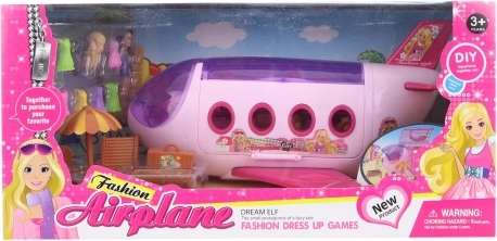 Dit roze plastic poppenvliegtuig is ontworpen voor leuk mode- en reisspel. Dankzij de uitgebreide set accessoires kunnen kinderen hun eigen verhalen creëren, de poppen aankleden en ze klaarmaken voor een spannende vlucht. De compacte afmetingen zorgen voor eenvoudig meenemen en opbergen.