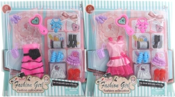 Stijlvolle set voor elke kleine poppenliefhebber: een jurk met een rijke collectie accessoires. Bevat 3 handtasjes, 4 paar schoenen, zonnebril en andere kleinigheden voor creatief spelen. De compacte verpakking is ideaal voor onderweg en het spel is geschikt vanaf 3 jaar.
