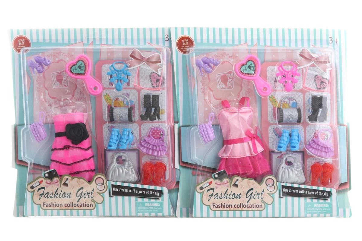 - Jurk voor pop, 3 handtasjes, 4 paar schoenen, een bril en overige accessoires
