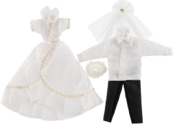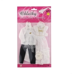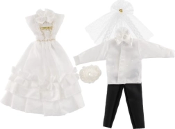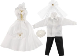Met deze unieke set trouwkleding kunnen je poppen de sterren worden van elke denkbeeldige bruiloft! De outfits omvatten gedetailleerd ontworpen jurken en elegante pakken die je trouwverhaal betovering en schittering geven.