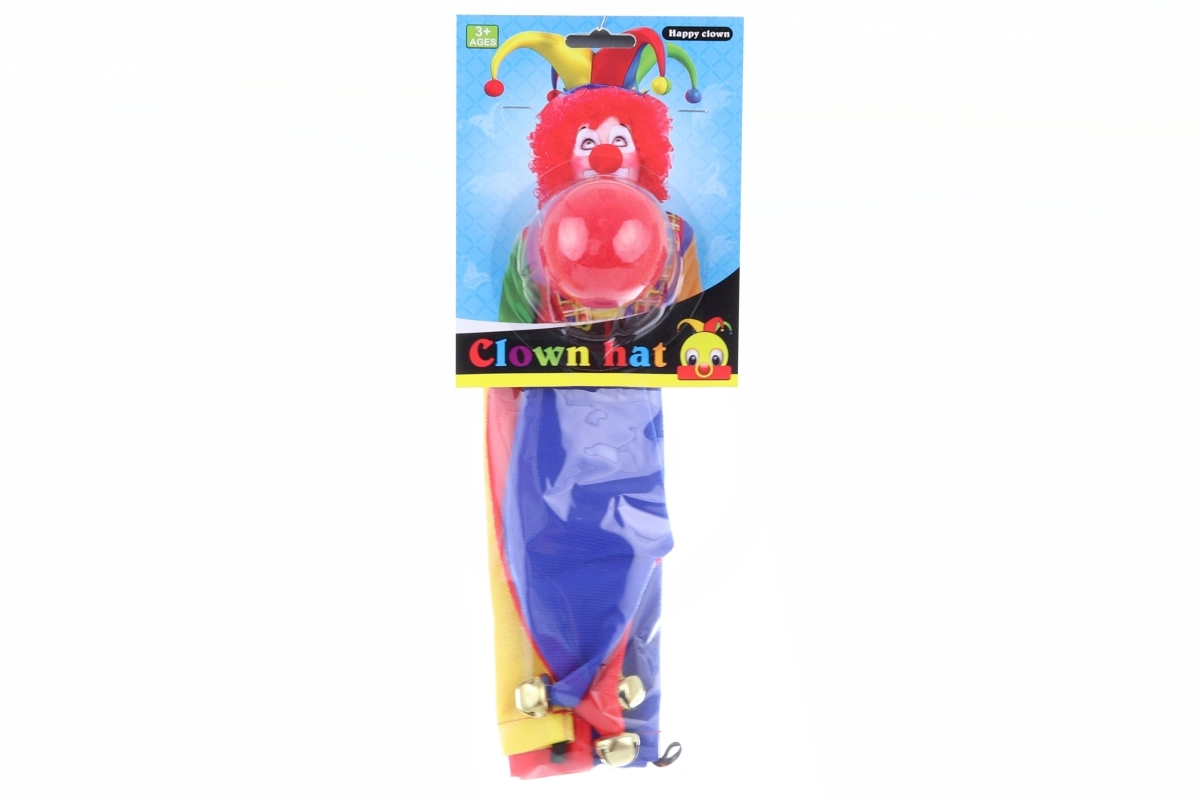 Deze kleurrijke set tovert iedereen in een oogwenk om tot een schattige clown. De zachte stoffen hoed in opvallende kleuren met metalen belletjes geeft het kostuum een speels geluidseffect, en de rode schuimneus is eenvoudig op te zetten en blijft comfortabel zitten.