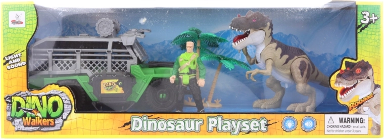 - Terreinwagen, figuurtje (mannetje), palmboom, batterijgestuurde dinosaurus