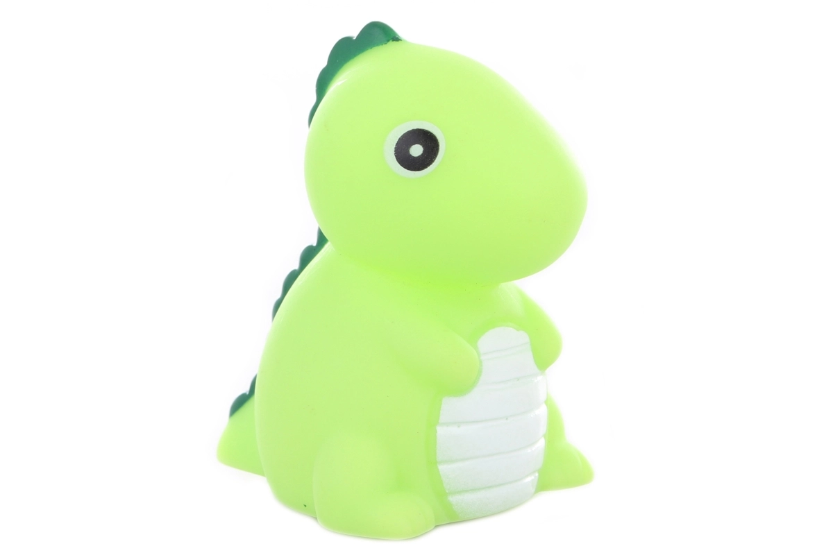 Lichtgevende dinosaurus voor in bad. Bevat niet-vervangbare batterijen. Afmetingen ca. 6 × 4,5 × 5 cm. Verpakt in een plastic zakje. Leeftijd 3+.