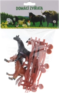 Plastic diertjes - paardjes met omheining. De set bevat 4 paarden en 4 delen omheining. Afmetingen verpakking ca. 15 x 25 x 5 cm. Afmetingen diertjes ca. 10 cm (afhankelijk van het type). Leeftijd 3+