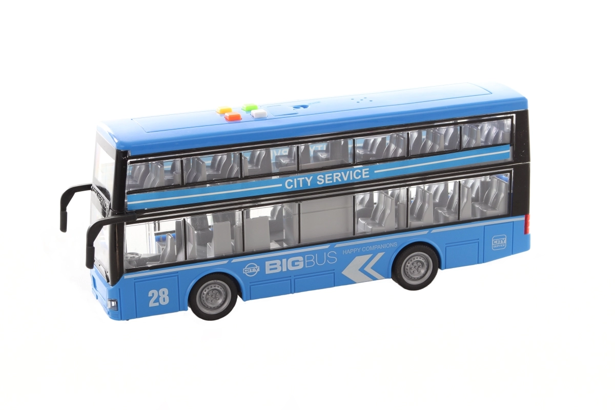 Deze blauwe dubbeldekker op batterijen maakt alle kleine voertuigfans blij. Dankzij de realistische geluiden voegt hij extra plezier en fantasie toe aan het spel. De robuuste kunststof uitvoering is ideaal voor dagelijks spelen.
