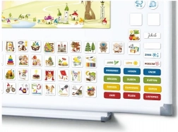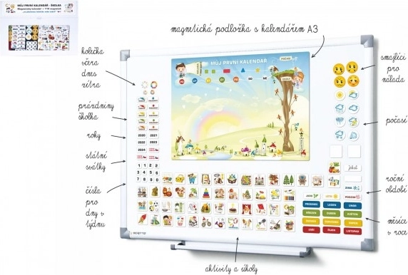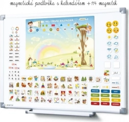 De magnetische kalender heeft een magnetisch bord van 420 x 297 mm, dat eenvoudig aan de koelkast of een ander metalen oppervlak kan worden bevestigd. De set bevat 114 magneten die creativiteit en plezier bieden aan uw kinderen: