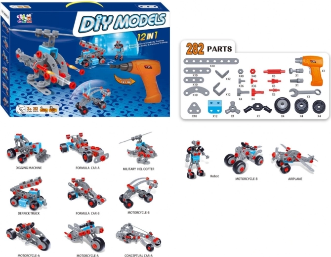 - Rijke uitrusting: 282 stukjes, kinderboormachine, schroevendraaier, handleiding