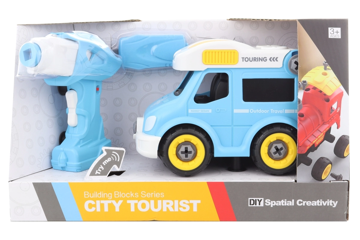 Ontdek een slimme speelset die de wereld van bouwen en afstandsbediening combineert. Kinderen schroeven de camper eerst in elkaar met de meegeleverde schroevendraaier of boormachine. Vervolgens halen ze de motor uit de boormachine, plaatsen die in de camper en meteen is het voertuig klaar voor RC-bediening voor- en achteruit. De camper produceert bovendien realistische geluiden, waardoor het spelen nog leuker wordt.