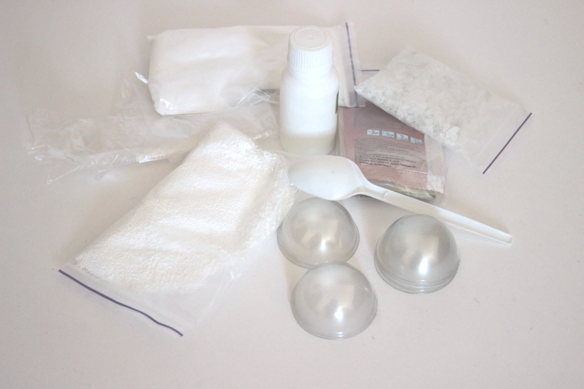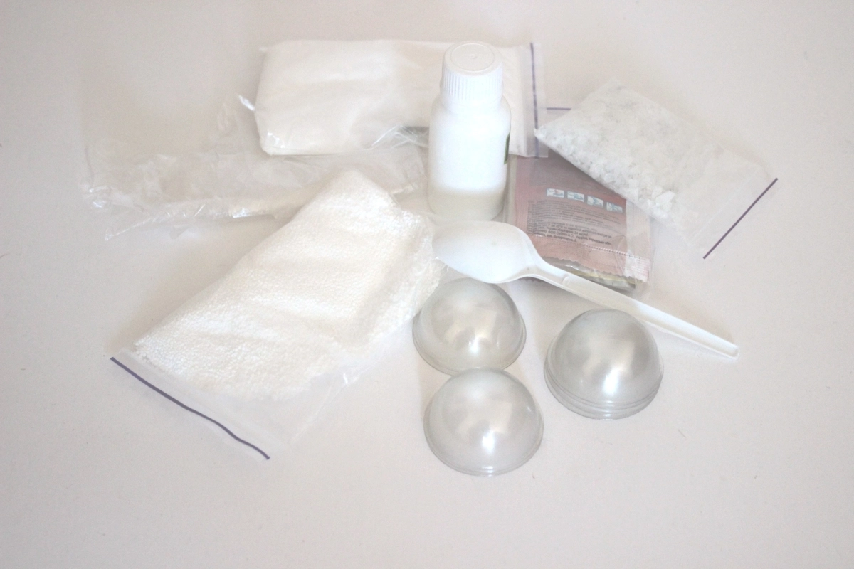 De set bevat ingrediënten en hulpmiddelen voor het maken van 4 badbruisballen – voeg alleen een beetje water toe en je kunt meteen beginnen.