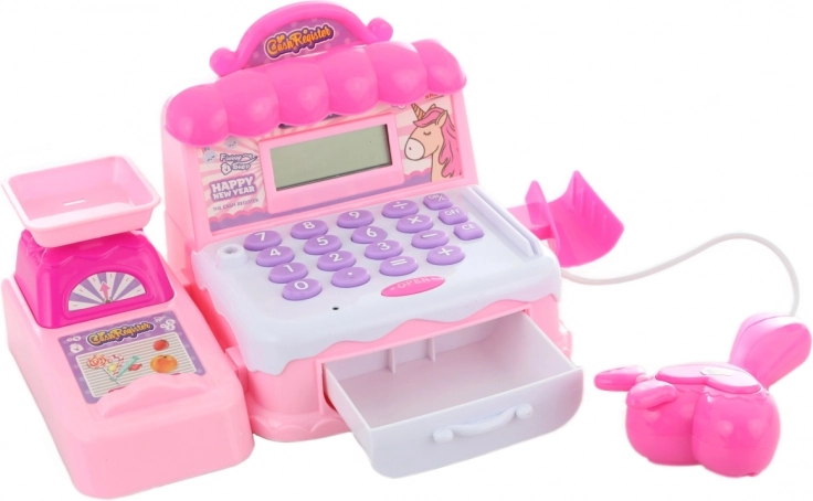 Deze vrolijke roze kassa met eenhoorn tovert elke speelhoek om tot een miniwinkeltje. Kinderen kunnen “producten” scannen, wegen, rekenen en het verdiende geld veilig opbergen in de lade. Realistische geluiden, lichten en display maken het spel geloofwaardig en ondersteunen op natuurlijke wijze het leren van cijfers en eenvoudig rekenen.