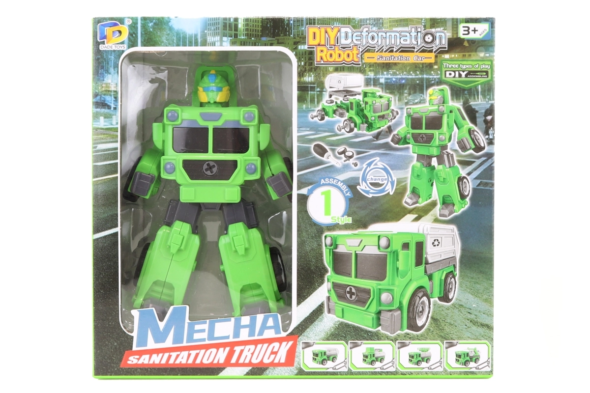 Ontdek het bouwplezier met de opvouwbare groene robot, die in een mum van tijd verandert in een vrachtwagen met graafmachine. Dankzij het eenvoudige schroefsysteem trainen kinderen handigheid, geduld en verbeelding, terwijl ze genieten van veel creatieve speeluren.