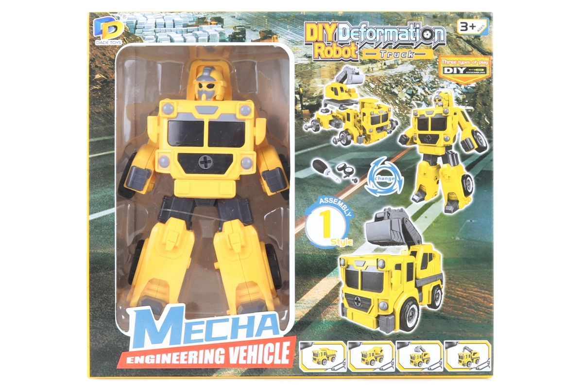Ontdek een speelse bouwset die kinderen vermaakt én ontwikkelt. De gele opvouwbare robot verandert dankzij de schroefonderdelen in een vrachtwagen met graafmachine, zodat jonge bouwers twee modellen in één kunnen beleven. In de doos zit alles wat je nodig hebt voor de montage, inclusief een kinder-schroevendraaier en accessoires.