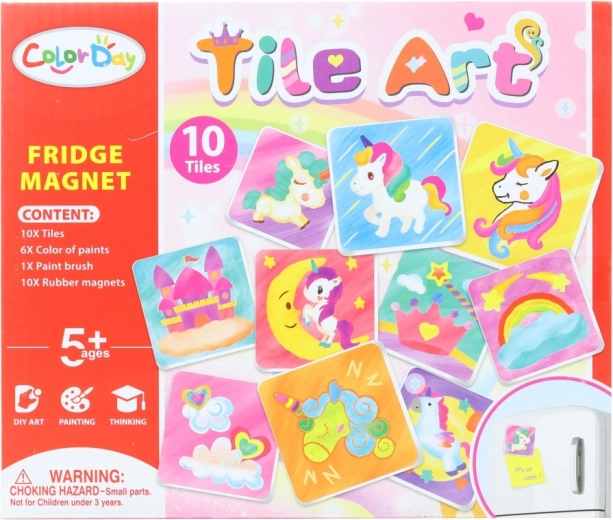 Ontdek een leuke set voor kinderen om magneten voor de koelkast te maken. De set bevat 10 porseleinen tegeltjes, 10 magneten, 6 verfjes en een kwast – alles wat kinderen vanaf 5 jaar nodig hebben om hun eigen originele decoraties te maken.
