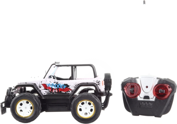 Ontdek de wereld van plezier met onze witte terreinwagen met afstandsbediening op schaal 1:16. Deze auto is ideaal voor kinderen vanaf 3 jaar die op zoek zijn naar avontuur in de tuin of in het park.