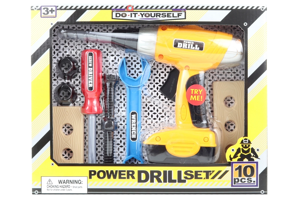 Deze kinder-gereedschapsset stimuleert de verbeelding en fijne motoriek van kleine klussers. De realistische boormachine draait en maakt geluid wanneer je erop drukt, zonder dat er batterijen nodig zijn. Zo kunnen kinderen veilig de rol van monteur of bouwer uitproberen.