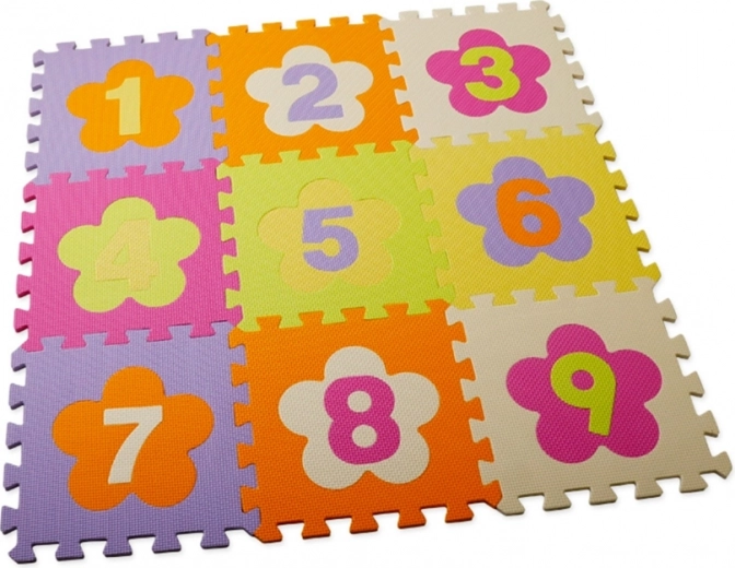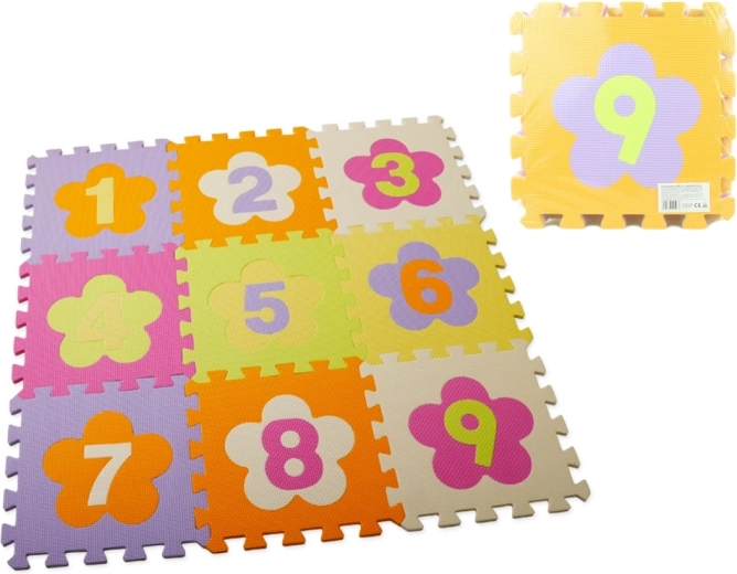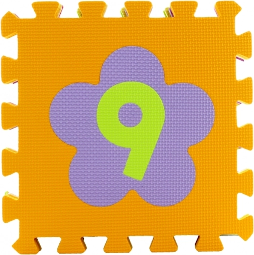 Kleurige schuimpuzzel met cijfers en uitneembare stukken vormt een zachte en veilige speelmat voor kinderen vanaf 3 jaar. De delen van 28 × 28 cm klikken eenvoudig in elkaar, hebben een geribbelde antisliplaag, zijn afwasbaar, geluiddempend en isoleren tegen kou. De verpakking bevat 9 vierkante delen.