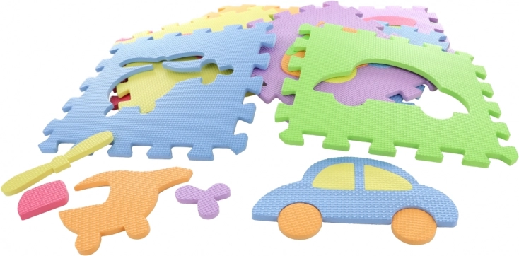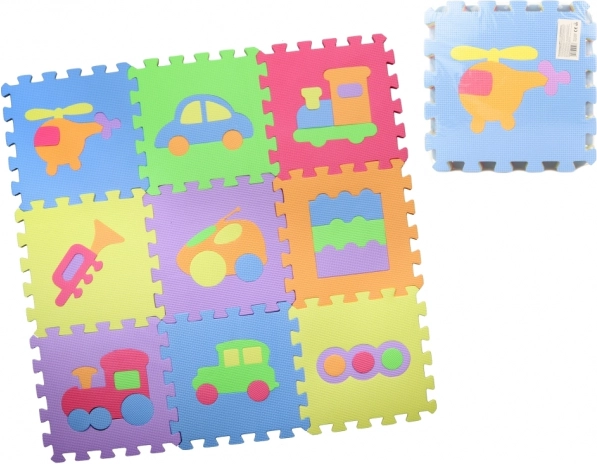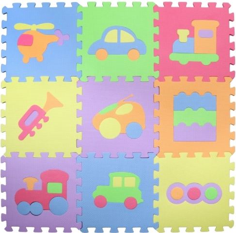 Deze set kleurrijke schuimrubberen puzzels biedt kinderen niet alleen een comfortabele en veilige onderlaag, maar ook een leuke manier van leren. De uitneembare vormen (voertuigen en andere objecten) bevorderen de fijne motoriek, het herkennen van vormen en kleuren en de ontwikkeling van de verbeelding tijdens het puzzelen.