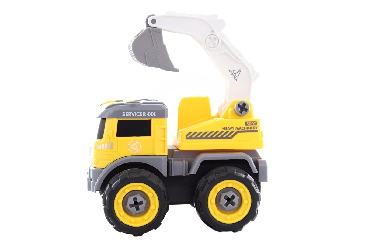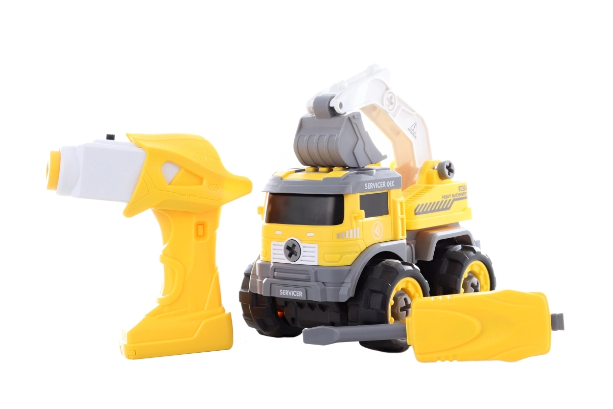 Ontdek de multifunctionele schroefbare graafmachine die creatief bouwen combineert met actief rijden. Kinderen schroeven het voertuig zelf in elkaar met de meegeleverde schroevendraaier of boormachine, waarvan de motor kan worden verwijderd. Na plaatsing van de motor in het voertuig verandert het speelgoed in een op afstand bestuurbare auto met voor- en achteruit rijden.