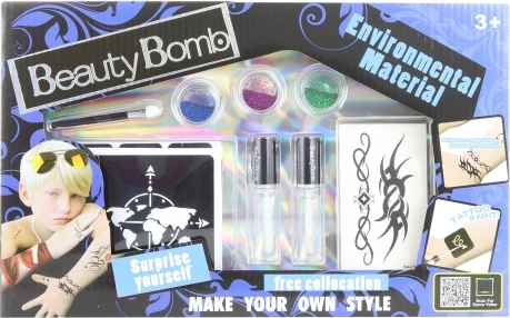 Ontdek een eenvoudige manier om de huid tijdelijk te versieren. De set bevat alles wat je nodig hebt om veilige en opvallende glittertattoos te maken – van sjablonen tot glitters en praktische accessoires. Dankzij de eenvoudige toepassing is hij geschikt voor beginners en leuk voor feestjes, carnavals en creatief knutselen thuis.