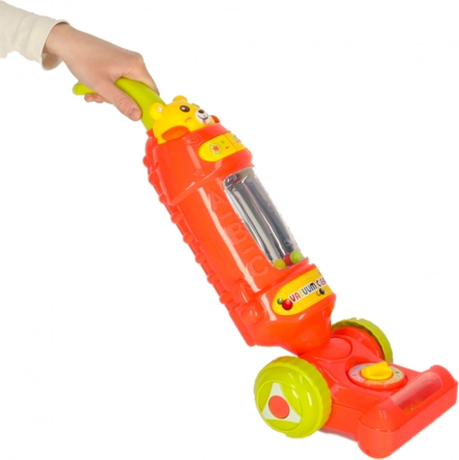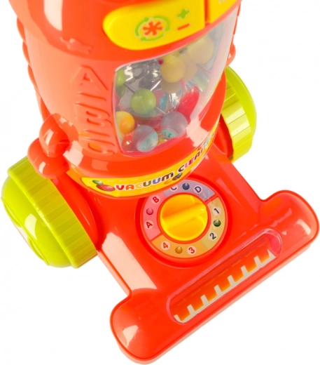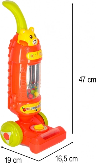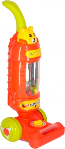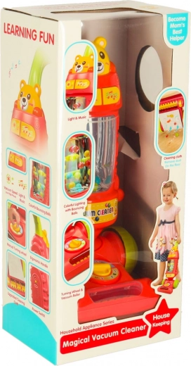 Deze frambooskleurige kindersteelstofzuiger is het ideale speelgoed voor kleine helpers in huis. Dankzij de licht- en geluidseffecten voelt hij aan als een echt apparaat en geeft hij kinderen het gevoel dat ze meedoen aan de dagelijkse bezigheden. Binnenin zitten gekleurde balletjes die tijdens het gebruik omhoog komen en weer omlaag vallen, wat het spel nog aantrekkelijker maakt.