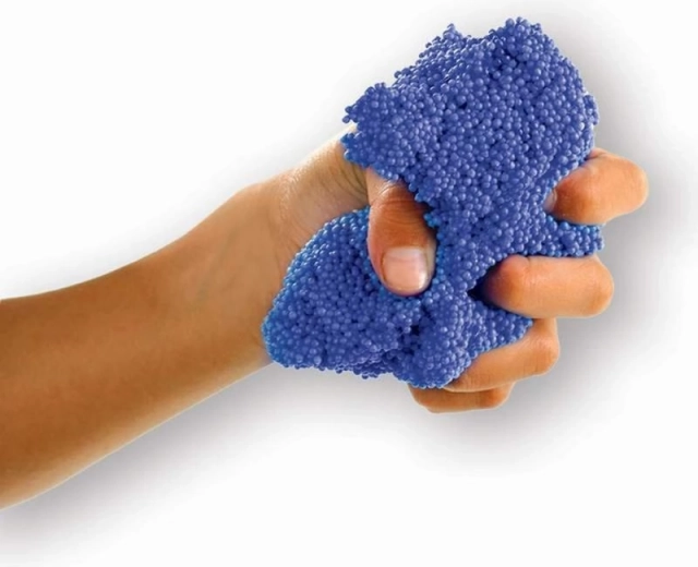Een speciaal bindmiddel houdt de bolletjes bij elkaar, maar hecht niet aan tafels, tapijten of banken. Ideaal om overal te spelen.