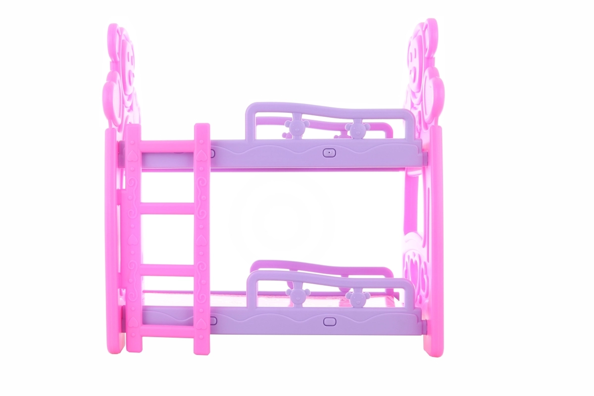 Dit plastic stapelbedje voor poppen is een geweldige aanvulling op de kinderkamer. Dankzij de compacte afmetingen past het in de meeste speelhoeken en biedt het ruimte voor twee poppen tegelijk. De constructie is licht maar stabiel, geschikt voor dagelijks spel.