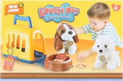 De set bevat een pluchen hondje van circa 18 × 12 cm, een kunststof draagkooi (20 × 21 × 13 cm), een voerbak en voer. Alles is aangepast aan kleine kinderhandjes en is gemakkelijk mee te nemen.