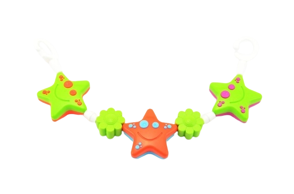 Deze kleurrijke kettingspeelgoed met zonnetje en sterretjes is eenvoudig te bevestigen aan een kinderwagen, autostoeltje of ledikant. Het ondersteunt het visuele waarnemen, de fijne motoriek en vermaakt de baby onderweg en thuis. Dankzij de duurzame kunststof en het veilige ontwerp is het ideaal voor dagelijks gebruik.