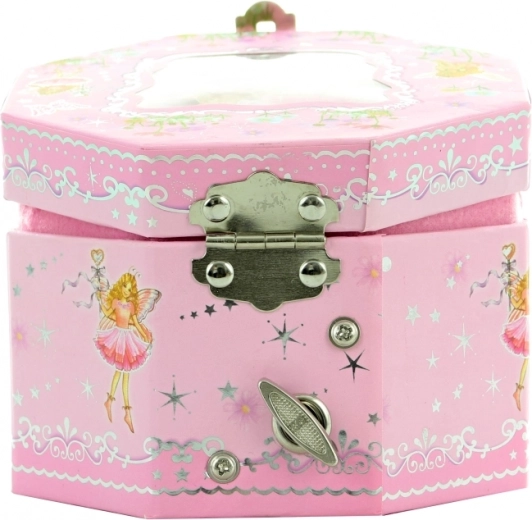 Deze charmante muzieksieradendoos in het roze met sprookjesmotieven is de perfecte plek om ringetjes, oorbellen en andere kleinigheden in op te bergen. Na het draaien aan het sleuteltje beweegt de ballerina sierlijk rond voor het spiegeltje en speelt het doosje een zachte melodie.