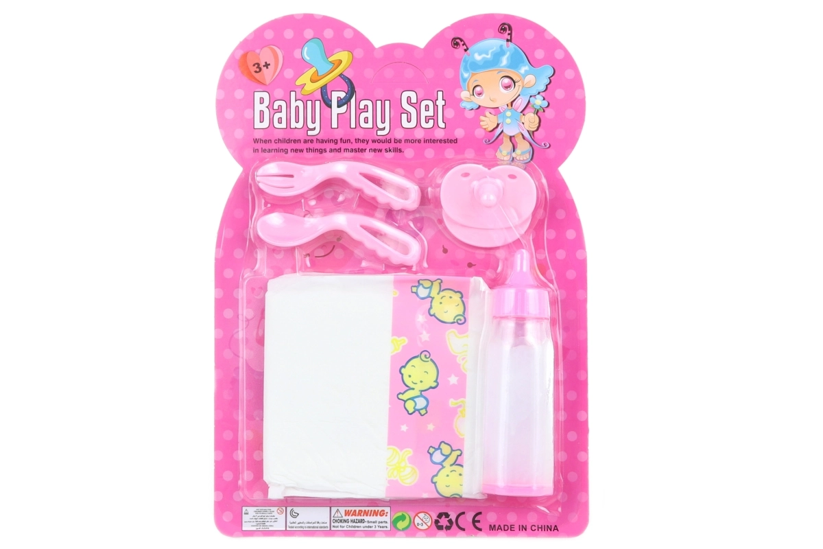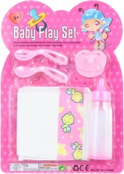 De inhoud van de set biedt alles voor complete zorg: een drinkflesje om de pop te drinken te geven, een luier om te verschonen, een fopspeen om te kalmeren en bestek om te voeren. Dankzij de compacte afmetingen is de set ook geschikt voor op reis en makkelijk op te bergen.