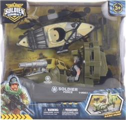 Deze militaire set zal elke kleine liefhebber van avontuur en actie blij maken. Hij is uitgerust met een plastic boot en kajak, die zorgen voor veel plezier zowel in het water als daarbuiten. Het soldatenfiguur voegt een defensief element toe aan het spel.