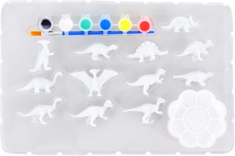 3D dinosaurusfiguren, 6 kleuren, penseel, palet