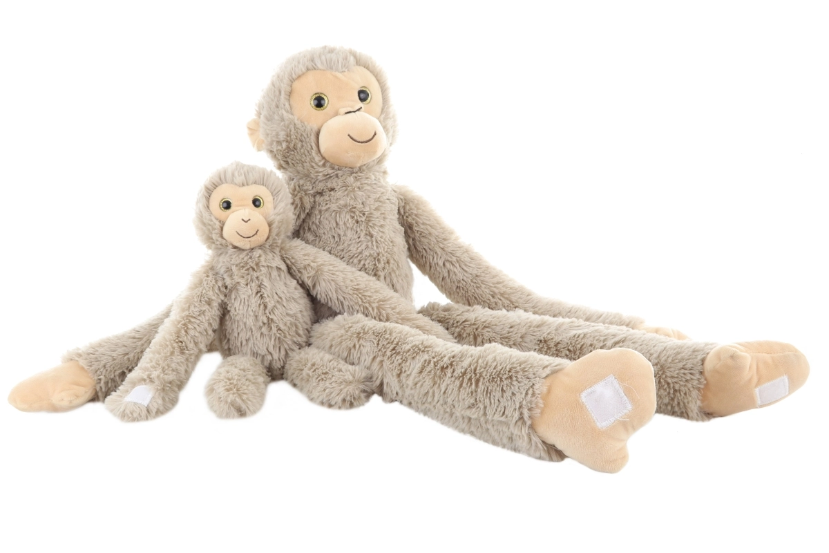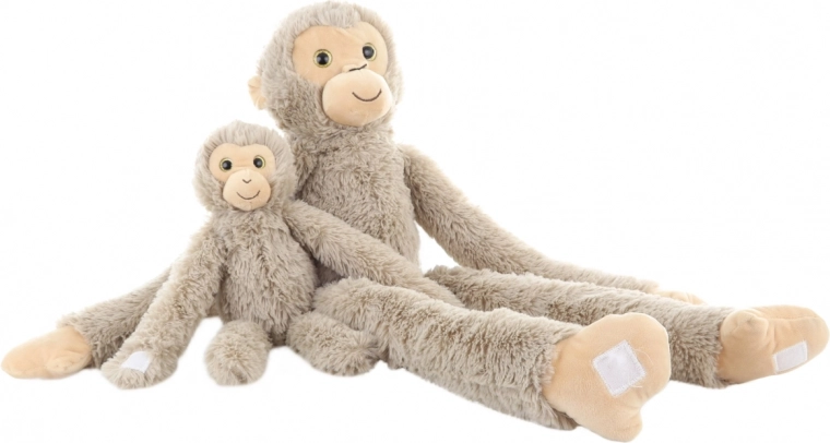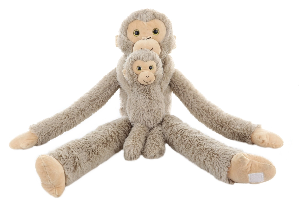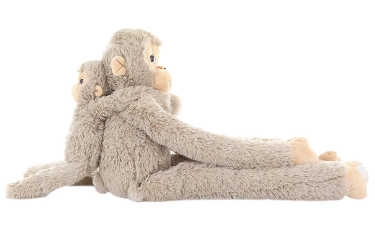 Deze zachte pluchen aap met jong verovert de harten van elke kleine dierenliefhebber. Lange, soepele armen met klittenband laten de aap knus bij het kind liggen of ophangen, terwijl het afneembare jong rollenspel en de fijne motoriek ontwikkelt.