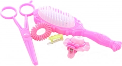 De verpakking bevat een uitgebreide set accessoires: kam, elastiekjes, spiraaltjes en speldjes, voor leuk en veilig speelplezier. Het product is ontworpen voor kleine handjes en stimuleert fantasie en vaardigheid.
