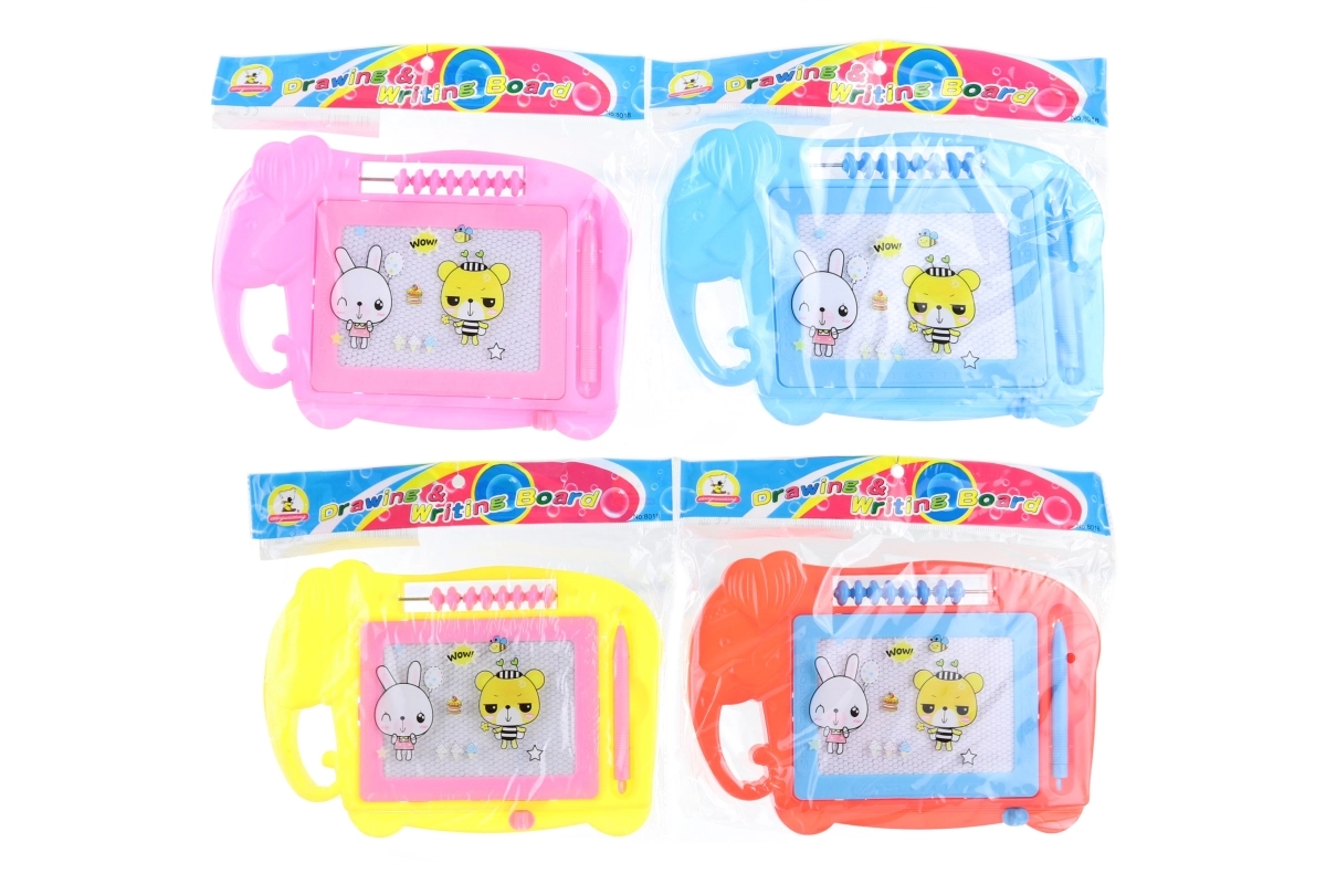 Tekenbord olifant van kunststof met afmetingen ca. 23,5 x 16 cm, inclusief pen. Verpakt in een zak. Afmeting verpakking 25 x 21,5 cm. Leeftijd 3+