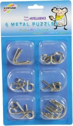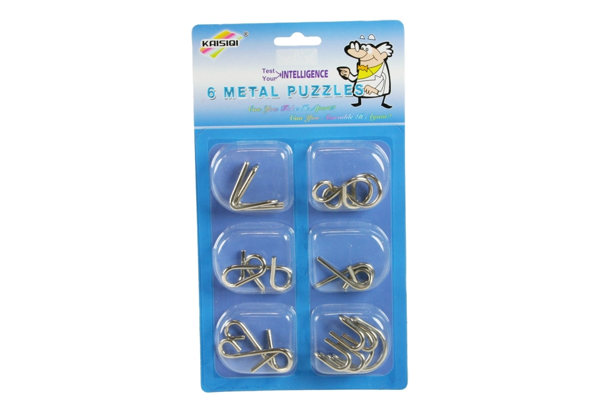 Deze set metalen puzzels biedt zes verschillende uitdagingen in een robuuste metalen uitvoering. Dankzij het compacte formaat passen ze in rugzak of handtas, zodat je altijd slim vermaak bij de hand hebt. Een perfecte keuze voor de ontwikkeling van logisch denken en fijne motoriek.