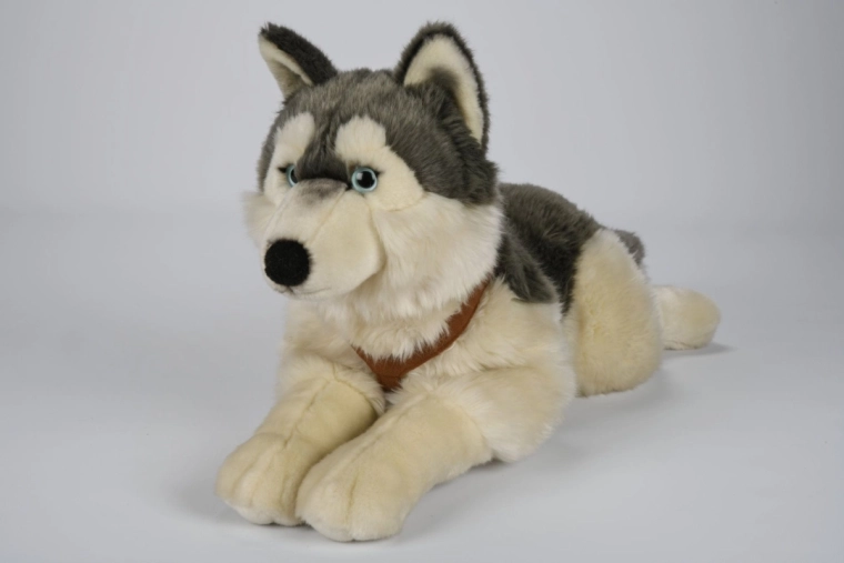 Zoek je een lieve knuffelvriend voor het slapen of een opvallende toevoeging aan de kinderkamer? Deze pluche husky is een uitstekende keuze.