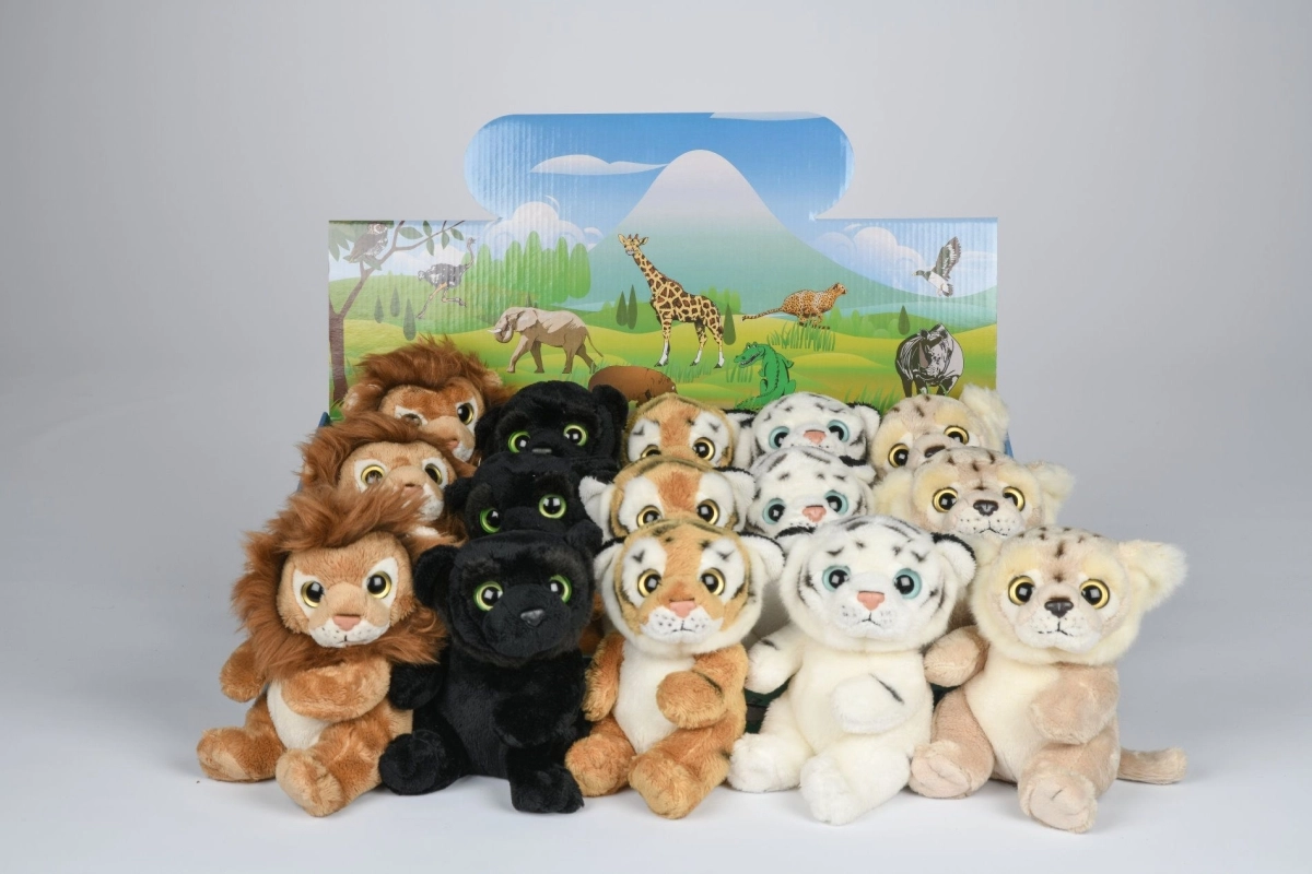 Ontdek de collectie pluchen roofdieren in het compacte 15 cm formaat – een leeuwtje, tijger, witte tijger of een schattig katje. Elk stuk is gemaakt van zachte, aangename pluche en afgewerkt met preciese stiksels voor veilig en langdurig gebruik. Dankzij de lichte vulling knuffelt het heerlijk en geeft het kinderen een rustgevend gevoel van geborgenheid.